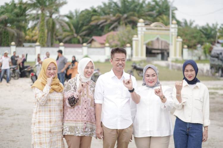 Bupati Rohil Bersama Istri dan Anak Nyoblos di TPS 02 Sintong Bakti