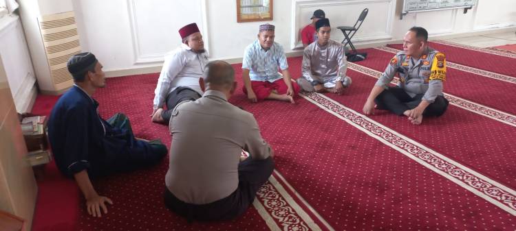 Tampak Kapolsek Pujud AKP Tri Adiyatmika S.H,M.H didampingi Kanit Lantas Ipda H. Syamsudin di Masjid Baitul Izza
