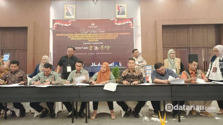 PEKANBARU, datariau.com - Komisi Pemilihan Umum (KPU) Kota Pekanbaru telah selesai merekapitulasi seluruh hasil perolehan suara Pemilihan Walikota (Pilwako) Pekanbaru sekitar pukul 00.50 WIB dini hari, Rabu (4/12/24).