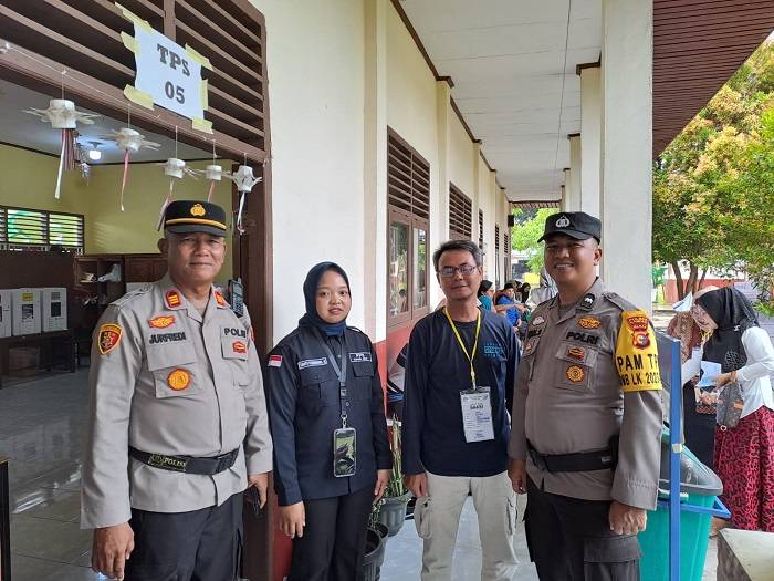 Kapolsek Tapung Hilir dan anggota PPK melakukan kontrol dan cek lokasi tempat pemungutan suara.