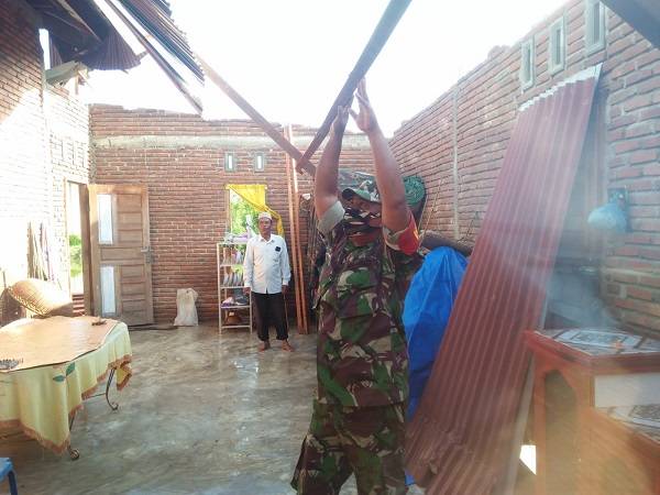 Kondisi rumah warga yang atapnya rusak diterjang angin.