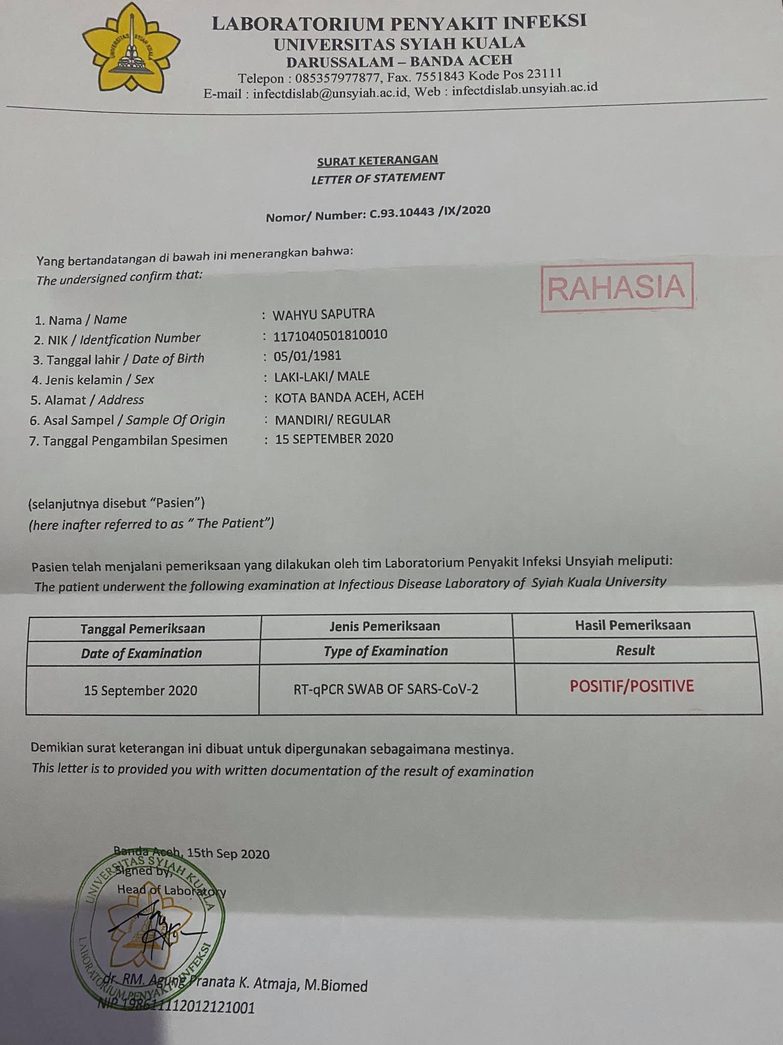 Ketua KNPI Aceh Positif Covid-19