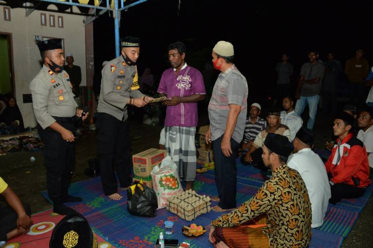 Keluarga menerima bantuan sebagai tanda duka dan simpati dari Kapolres Langsa yang diserahkan Kabag Ops.