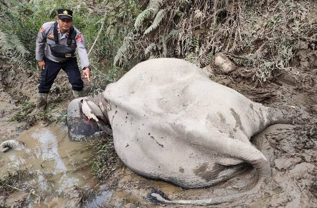 Seekor Gajah Jinak Tewas Dikeroyok Gajah Liar di Aceh Timur