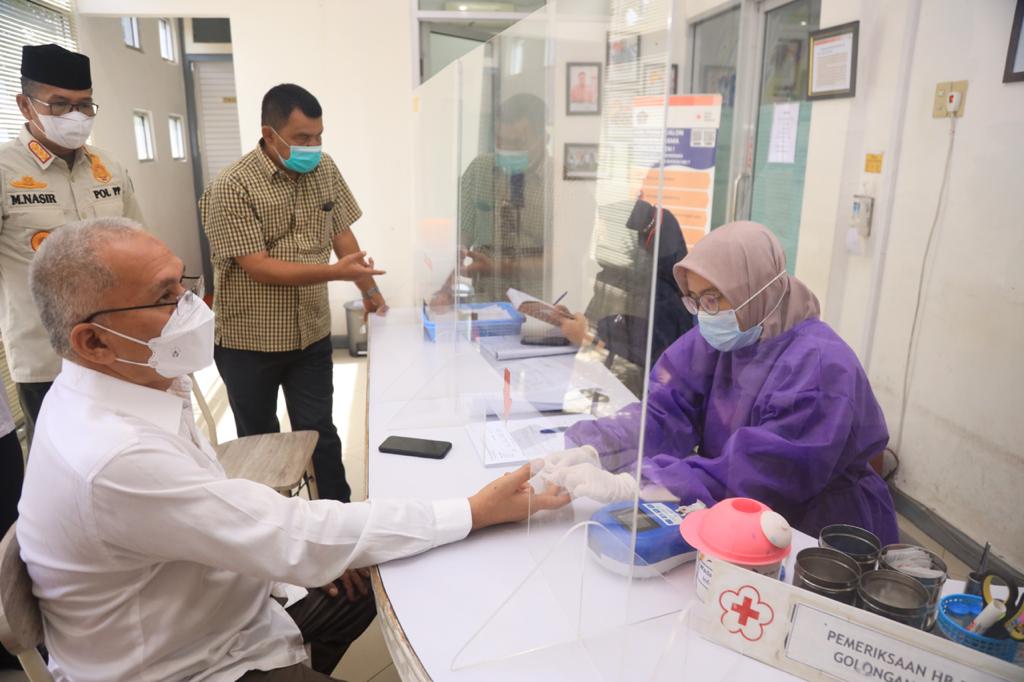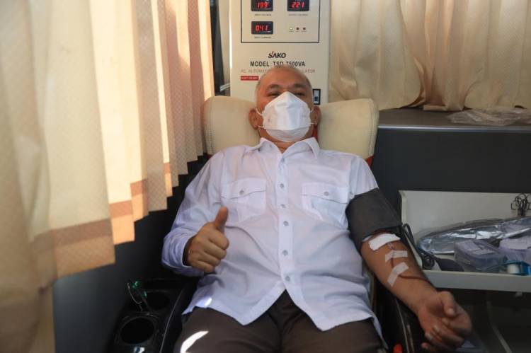 Sekretaris Daerah Aceh, dr. Taqwallah, M. Kes melakukan donor darah rutin di PMI Banda Aceh, Rabu (9/6/2021).