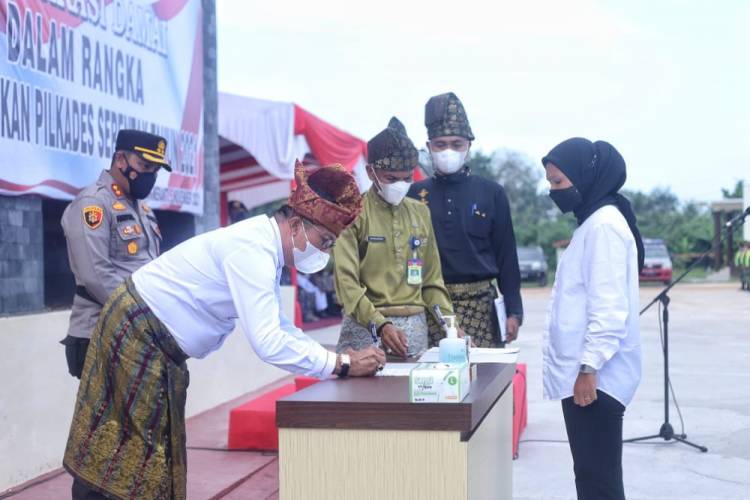 Dalam acara tersebut terlihat beberapa Calon Kades yang ikut serta dalam upacara yang berjumlah sekitar 106 orang. Kemudian langsung melakukan penandatanganan Deklarasi Damai pada pemilihan Kepada Desa Tahun 2021 oleh Bupati Meranti H Muhammad Adil SH.