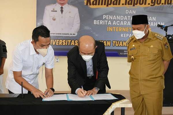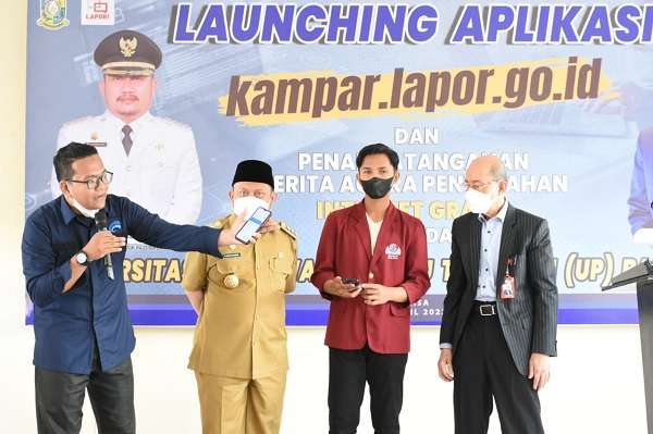 Selain launching aplikasi Kampar.Lapor.go.id, Bupati Kampar bersama Rektor Universitas Pahlawan Bangkinang Prof Dr Amir Luthfi pada kesempatan tersebut juga melakukan penandatanganan berita acara penyerahan internet gratis kepada Universitas Pahlawan (UP) Tuanku Tambusai Bangkinang.