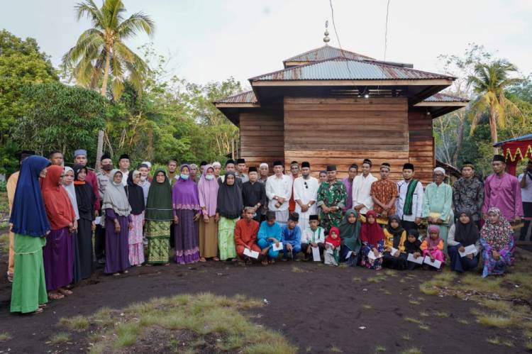 KEPULAUAN MERANTI, datariau.com - Bupati Kepulauan Meranti H Muhammad Adil SH melaksanakan Safari Ramadhan di Desa Pangkalan Balai Kecamatan Pulau Merbau, bersama Rombongan Pemkab Meranti sekaligus memberikan santunan anak yatim dan berikan sembako untuk pengurus masjid, Sabtu (24/4/2022).