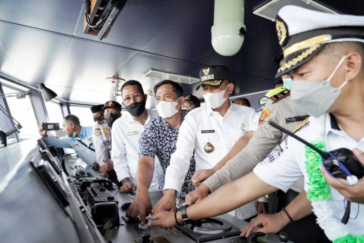 KEPULAUAN MERANTI, datariau.com - Bupati Meranti H Muhammad Adil SH Hadiri Acara Tasyakuran Pelayaran Perdana KMP Tirus Meranti Lintasan Alai-Insit di Pelabuhan Roro Insit, Rabu (02/02/2022).