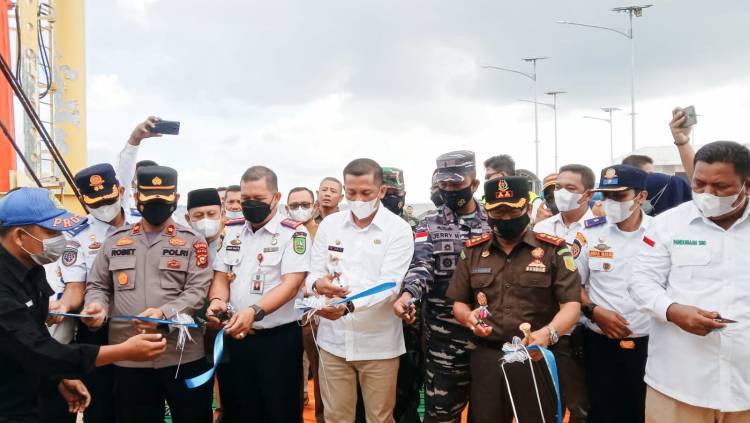 MERANTI, datariau.com - Bupati Meranti H Muhammad Adil SH hadir dalam acara Uji Kelayakan dan Bongkar Muat di Pelabuhan Roro Insit Kapal KMP Tirus Meranti, Kecamatan Tebingtinggi Barat, Selasa (21/12/2021).