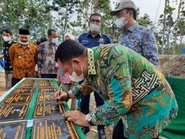 Bupati Kampar H Catur Sugeng Susanto SH MH menandatangani prasasti peresmian Pamsimas di