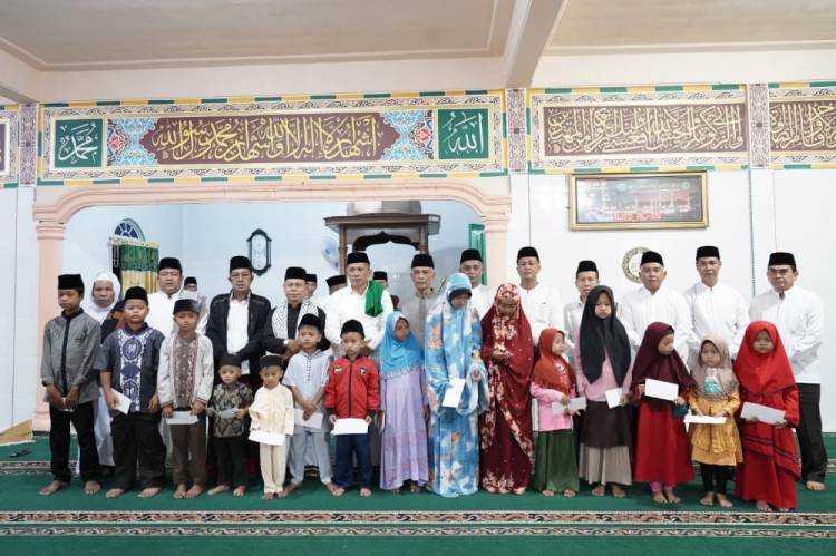 "Setiap masjid/musholla bagi imam, guru ngaji, ghorim, tukang azan, dan lainya akan mendapatkan gaji sebanyak Rp200 ribu, sementara itu beras yang ada di hadapan itu adalah bantuan untuk masjid serta musholla. Perlu saya ingatkan kepada kepala desa tolong ingatkan kepada anak-anak agar tidak main mercun di masjid karena itu akan mengganggu saat orang beribadah," kata H Muhammad Adil SH MM.