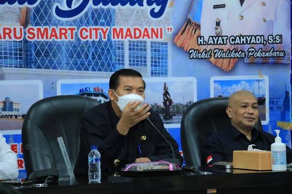 Walikota Pekanbaru, selaku ketua Tim Percepatan dan Perluasan Digitalisasi Daerah (TP2DD) melakukan evaluasi IETPD triwulan IV 2021.