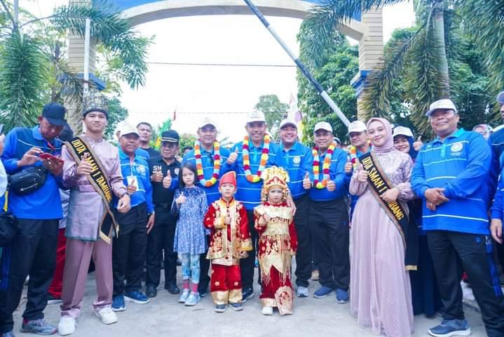 TAMBANG, datariau.com - Ketua DPRD Kampar Muhammad Faisal ST bersama Pj Bupati Kampar Dr H Kamsol MM melepas kegiatan gerak jalan santai dalam rangka HUT ke-77 PGRI di Kecamatan Tambang, Sabtu (19/11/2022).
