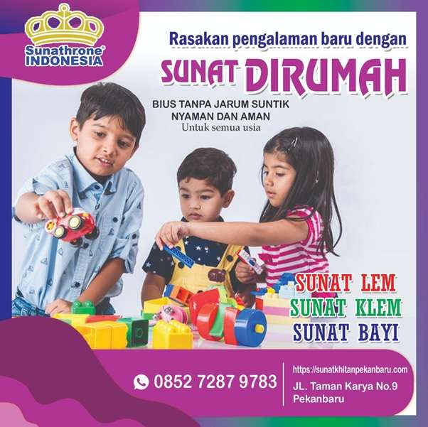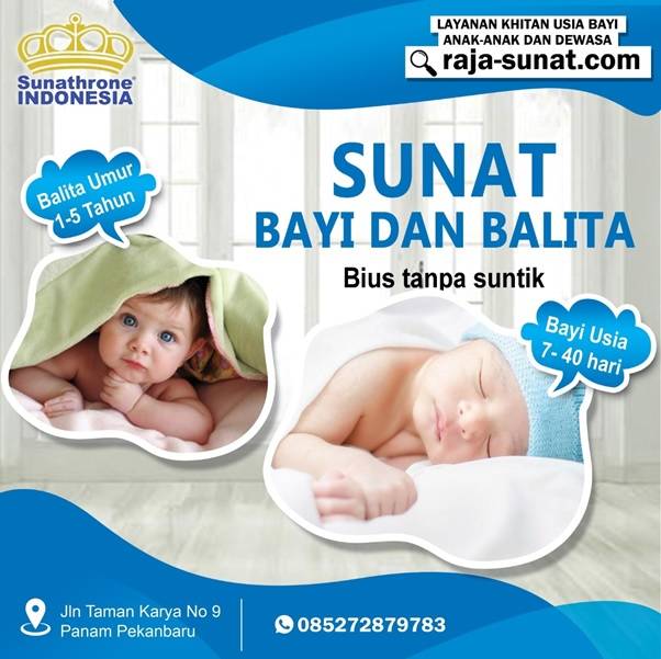 Sunat Khitan Pekanbaru adalah klinik khitan yang berlokasi di Jalan Taman Karya Nomor 90.in Panam dan telah berpengalaman selama 21 tahun. Termasuk menjalankan khitan bayi di bawah 1 tahun.