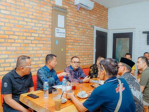 Pj Bupati Kampar Muhammad Firdaus SE MM saat menerima audiensi dengan kepanitiaan yang digelar di Pekanbaru, Kamis (2/11/2023).