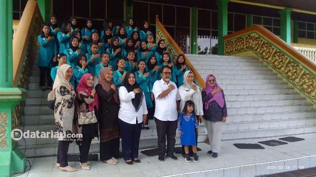 Tampak para pelajar SMK Perbankan Riau Jurusan Busana didampingi 4 guru pembimbing melakukan kunjungan ke Museum Sang Nila Utama Provinsi Riau, Kamis (29/2/2024).