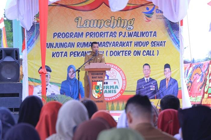 Pj Walikota Pekanbaru Muflihun SSTP MAP saat launching program Dokter on Call 24 jam.