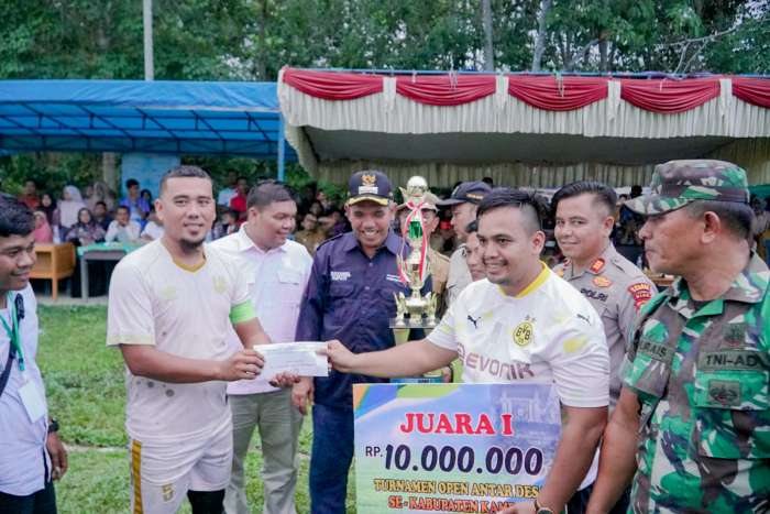 Pada pentupan turnamen bola kaki itu, Pj Bupati Kampar Dr H Kamsol MM menyampaikan atas nama Pemerintah Kabupaten Kampar mengucapkan terimakasih dan apresiasi terhadap terselenggaranya turnamen yang dilaksanakan dan diikuti berbagai tim dari desa se-Kabupaten Kampar.