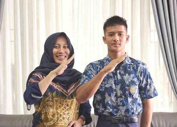 Pj Ketua TP PKK Kabupaten Kampar drg Yusi Firdaus MM foto bersama atlet panjat tebing M Fauzan
