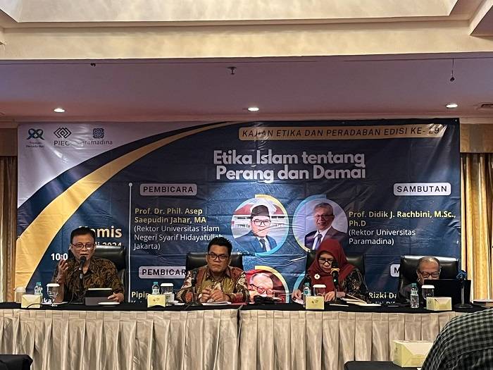 Kajian Etika dan Peradaban Edisi ke-29 mengangkat tema Etika Islam Tentang Perang dan Damai bertempat di Hotel Ambhara pada Kamis (4/7/2024) dan dimoderatori oleh Dr Rizki Damayanti.