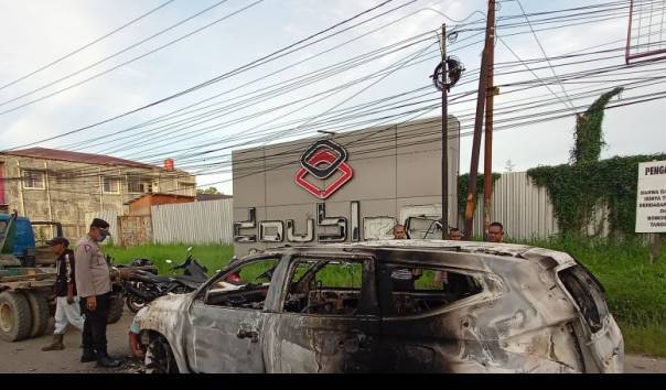Situasi depan tempat karaoke di kota Sorong yang dibakar massa bentrokan. DJ Indah Cloe ikut jadi korban tewas. (Sumber: Antara/ Ernes Broning Kakisina)