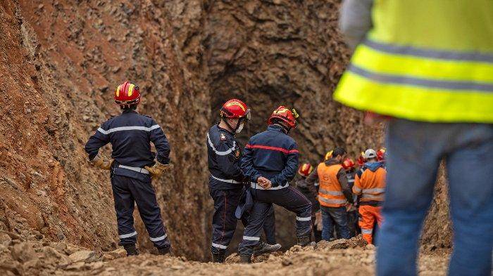 Tim penyelamat darurat Maroko bekerja untuk menyelamatkan bocah laki-laki berusia lima tahun, Rayan, dari lubang sumur yang dia jatuhi pada 1 Februari, di desa terpencil Ighrane di provinsi utara pedesaan Chefchaouen pada 4 Februari 2022