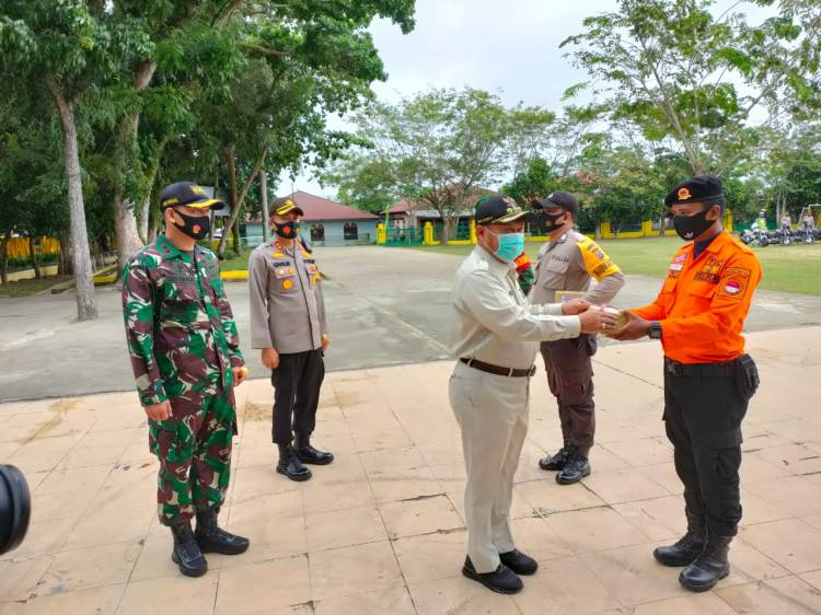 10 Ribu Masker Dibagikan Bupati Kampar Didampingi Kapolres serta Dandim