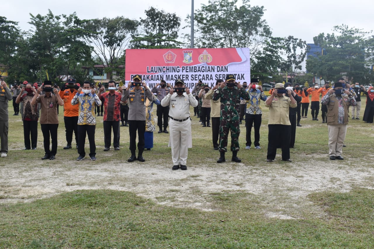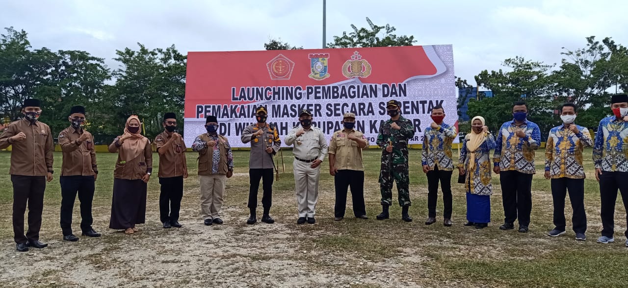 Suasana Launching Pembagian dan Pemakaian Masker Secara Serentak untuk Wilayah Kabupaten Kampar.