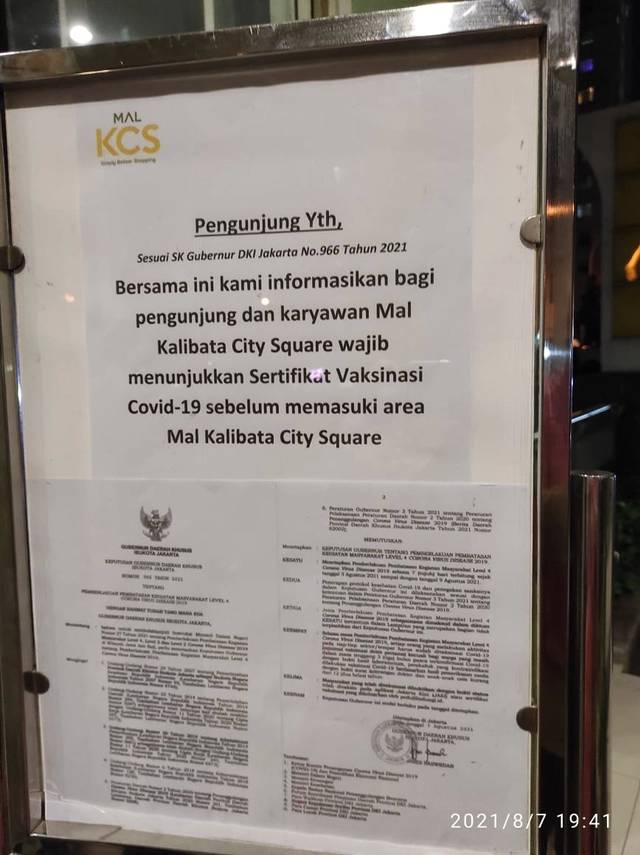11 Mal di Jakarta Mulai Wajibkan Pengunjung Bawa Sertifikat Vaksinasi