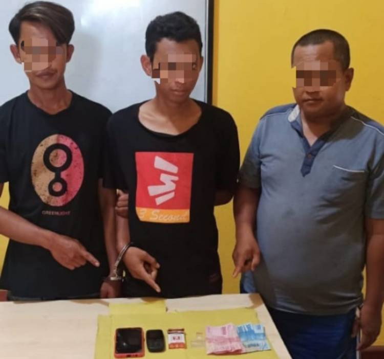 Bersama ketiga pelaku turut diamankan sejumlah barang bukti berupa 1 kotak rokok merek Sampoerna di dalamnya terdapat 1 bungkus plastik bening yang di dalam plastik bening tersebut terdapat 1 bungkus plastik bening berisikan serpihan kristal yang diduga Narkotika jenis sabu, uang Rp 900.000, dan 2 unit Handphone masing-masing merek Oppo warna hitam dan merek Nokia warna hitam.