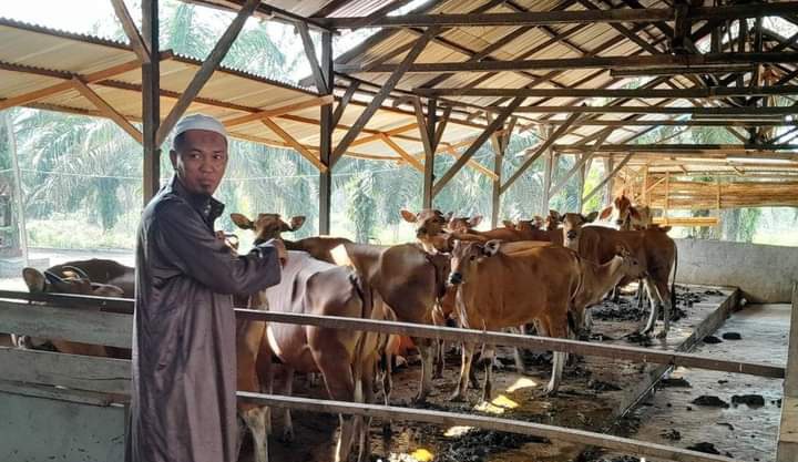 Dimana peternakannya sapi tersebut, berlokasi di atas lahan perkebunan sawit miliknya yang berada di Jalan Lintas Minas-Perawang KM 11 Perawang Barat, Kecamatan Tualang.