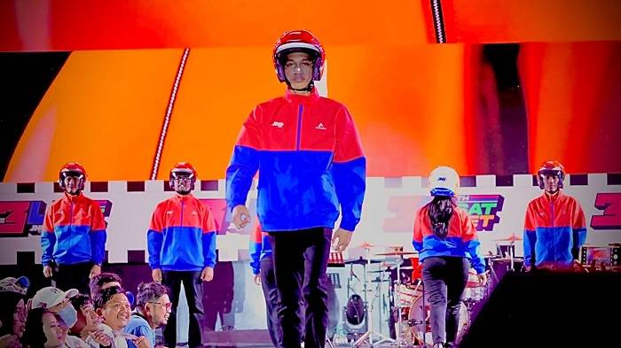"Jaket dan helm ini dirancang khusus untuk memenuhi kebutuhan para kurir dengan menggabungkan desain yang stylish dan fungsional serta mampu memberikan perlindungan yang optimal dan juga mencerminkan semangat muda dan dinamis bagi para #KurirSATSET JNE,” ungkapnya.