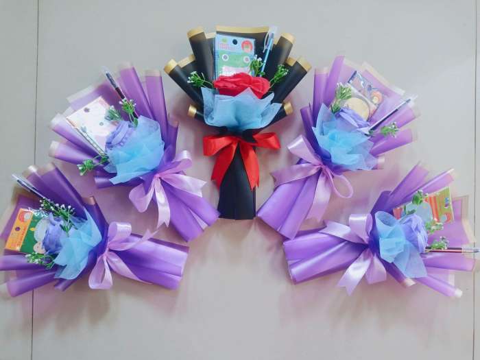 Namun, peluang keuntungannya tak kalah dari jenis buket lainnya.Buket ini terdiri dari beragam alat tulis, seperti pensil, pulpen, spidol, penghapus, dan buku catatan yang dirangkai sedemikian rupa.