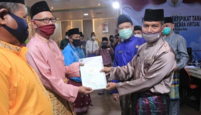 SIAK, datariau.com - Kemaren, Jum'at (7/8/2020) Kementerian Agraria dan Tata Ruang Badan Pertanahan Nasional (BPN) kembali menyerahkan sebanyak 16.372 sertifikat tanah kepada masyarakat di Provinsi Riau.