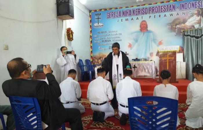 Sementara 3 orang anak lainya mengikuti Baptis di Gereja Niha Keriso Protestan (GNKP) Indonesia Jemaat Perawang Kecamatan Tualang Kabupaten Siak Riau pada Ahad (16/8/2020) sekira pukul 10.00 WIB.