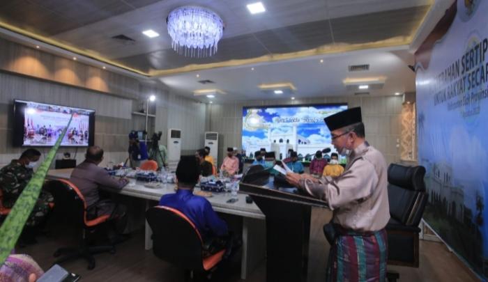 Penjabat Sekertaris Daerah Kabupaten Siak Drs H Jamaluddin MSI saat mengikuti video conference bersama Kepala Badan Ketahanan Pangan Republik Indonesia pada Kamis (6/8/2020) kemaren. Dengan tema 'Perkuat Cadangan Pangan dan Gizi' yang di ikuti sejumlah Sekertaris Daerah kabupaten/kota di wilayah barat Indonesia.