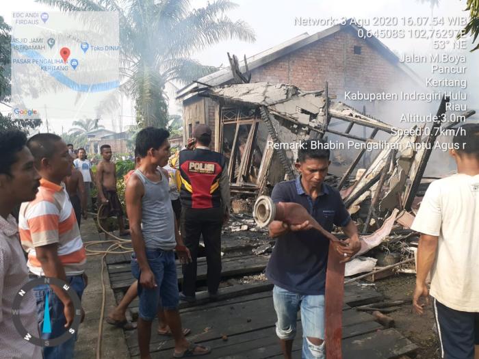 Polsek Kerintang Berjibaku Padamkan Kebakaran Rumah, Uang dan Emas Hangus