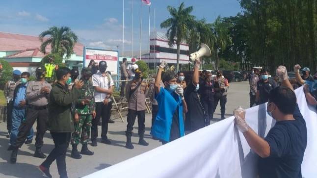 Puluhan massa yang tergabung dalam Komite Nasional Pemuda Indonesia (KNPI) Tualang itupun melanjutkan orasinya di depan Gedung PT. IKPP Perawang, dimana massa sebelumnya diminta untuk dilakukan test rapid antigen.