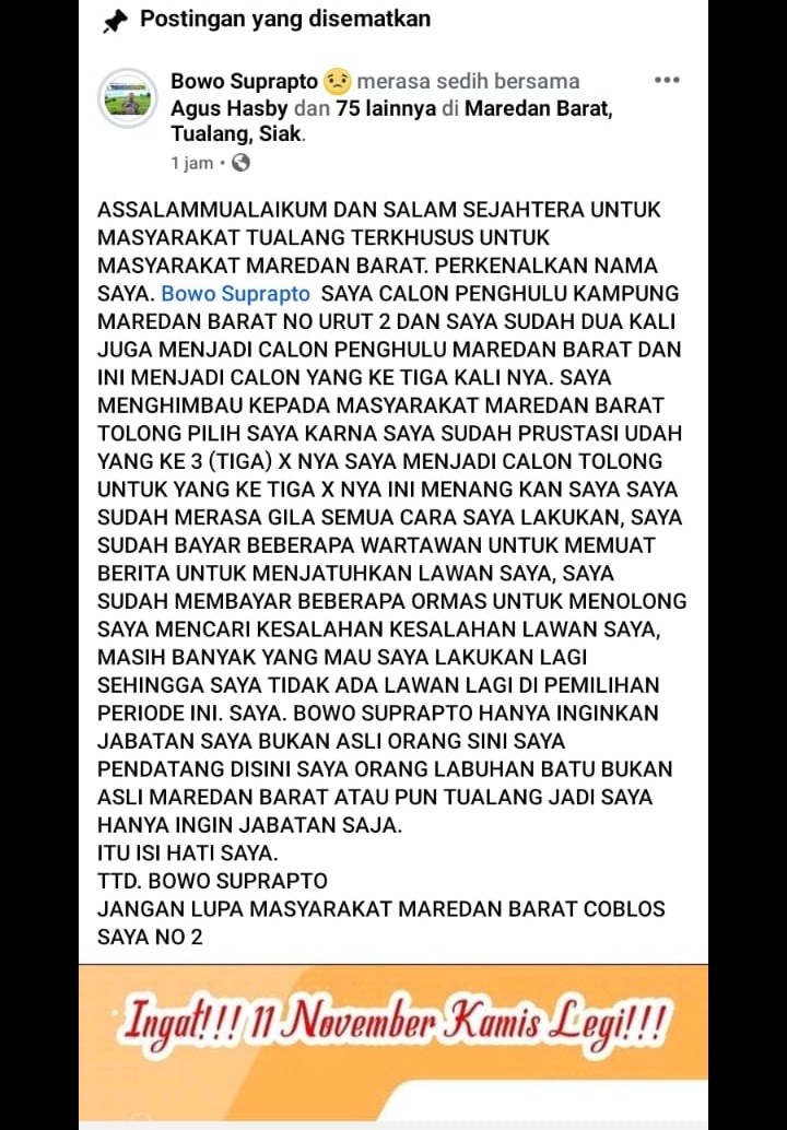 Calon Penghulu Maredan Barat Bowo Suprapto.