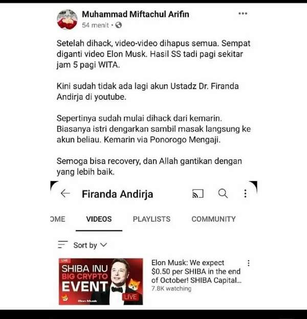 Akun YouTube Ustadz Firanda Dibajak, Video Dakwah Dihapus Diganti Elon Musk