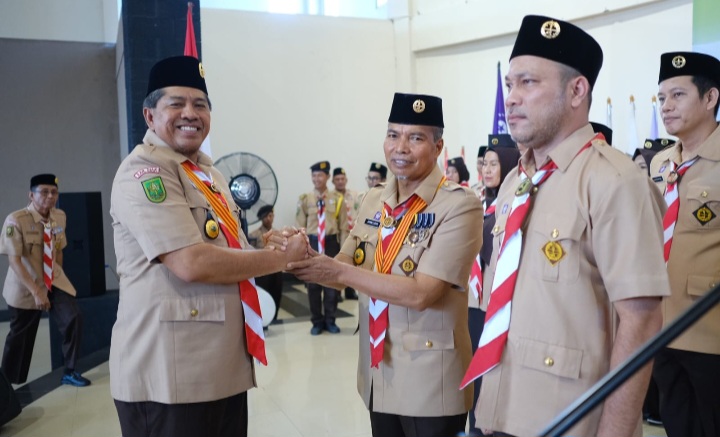 SIAK, datariau.com - Bupati Siak Drs H Alfedri MSi dilantik menjadi Ketua Majelis Pembimbing Cabang (Kamabicab) Gerakan Pramuka Siak periode 2023-2028 oleh Ketua Kwarda Gerakan Pramuka Riau Kasiarudin, bertempat di Gedung Kesenian Siak, Kamis (8/6/2023).
