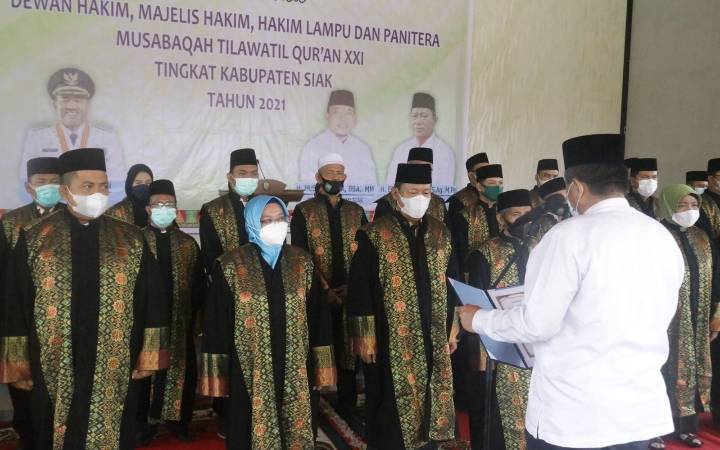 Bupati Siak Drs H Alfedri MSi kukuhkan Dewan Hakim MTQ Kabupaten Siak di Kecamatan Tualang.