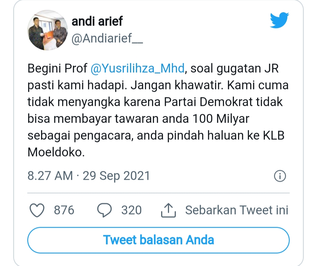 Andi Arief: Demokrat Tak Bisa Bayar Rp100 M, Yusril Pindah ke Moeldoko