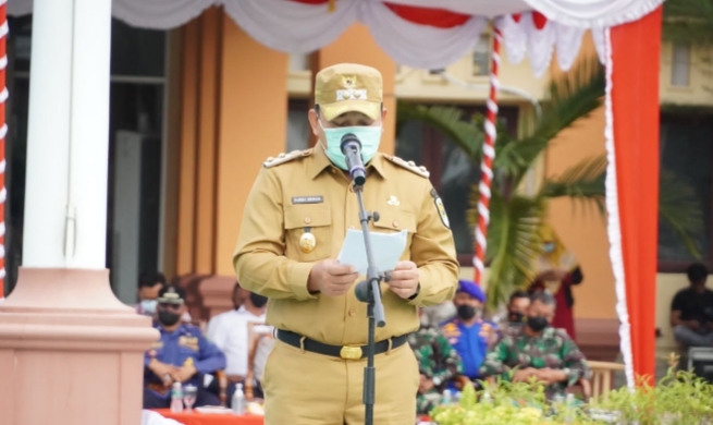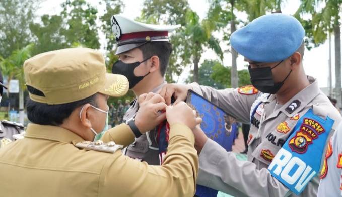Wakil Bupati Siak H Husni Merza BBA MM giat upacara persiapan Operasi Lalin Lancang Kuning 2021.