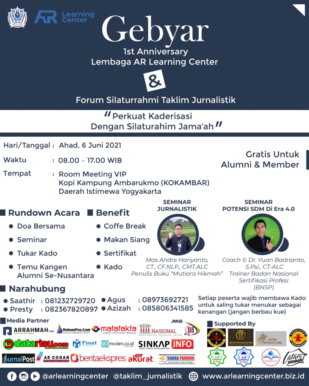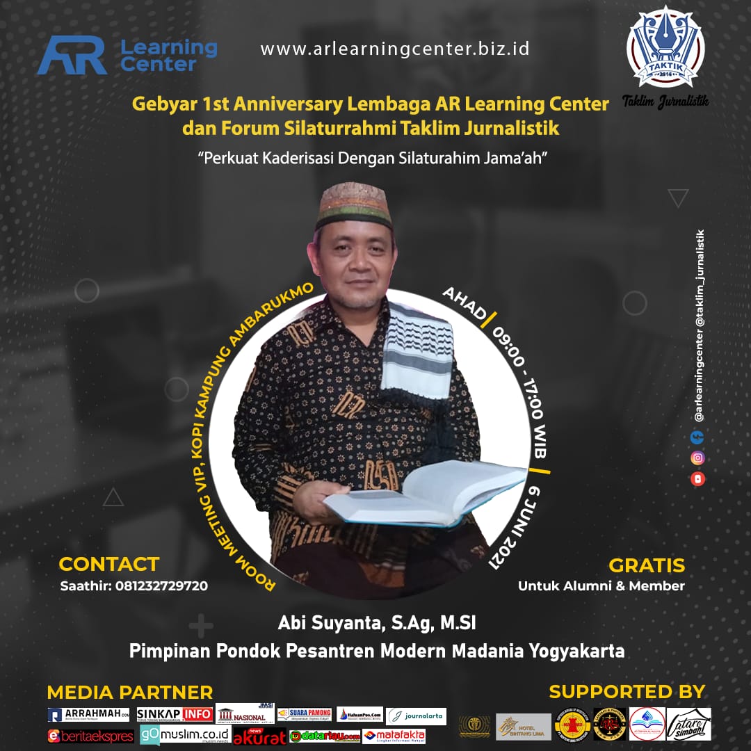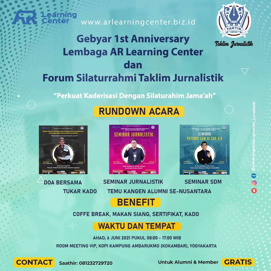 AR Learning Center akan menggelar Gebyar 1St Anniversary (Happy Milad) bertemakan "Perkuat Kaderisasi dengan Silaturrahmi Jama'ah".