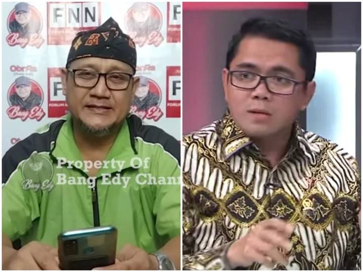 Kolase foto Edy Mulyadi dan Arteria Dahlan /Tangkapan layar/Bang Edy Channel/Najwa Shihab
