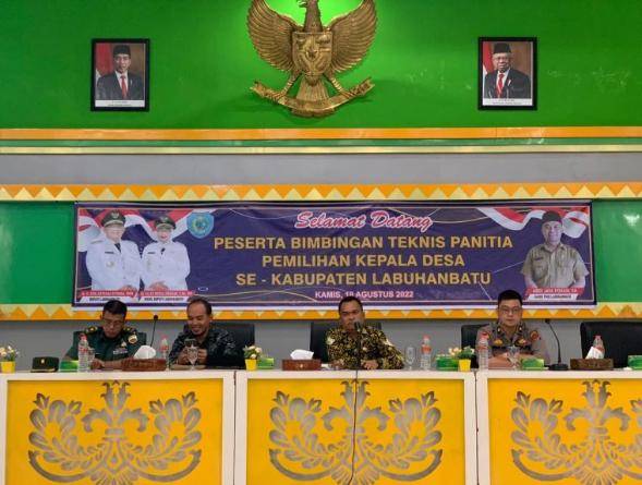 LABUHANBATU, datariau.com - Asisten I Pemerintahan Setdakab Labuhanbatu Drs Sarimpunan Ritonga MPd membuka Bimbingan Teknis Panitia Pemilihan Kepala Desa Se-Kabupaten Labuhanbatu 2022 yang diselenggarakan oleh Dinas Pemberdayaan Masyarakat Desa Kabupaten Labuhanbatu di Ruang Data dan Karya Kantor Bupati, Kamis (18/08/2022).