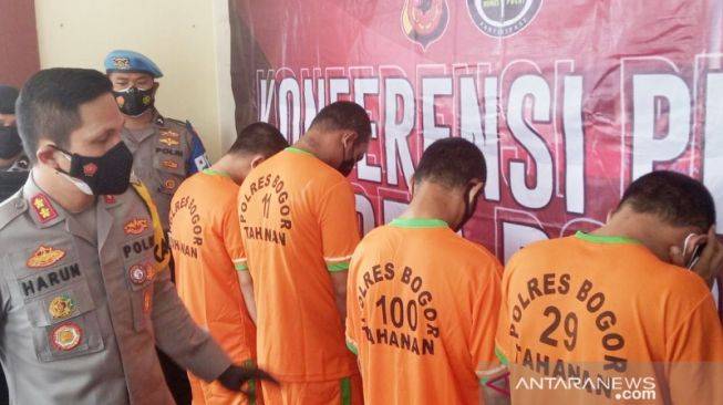 Konferensi pers penangkapan dua komplotan Mata Elang, di Mapolres, Cibinong, Kabupaten Bogor, Jawa Barat, Jumat (23/7/2021).