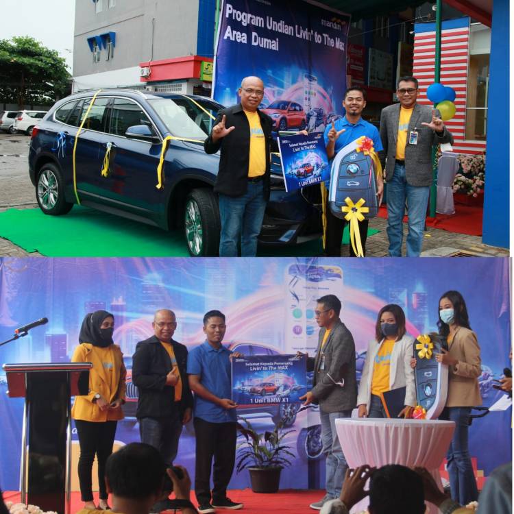 Khususnya di Area Dumai Bank Mandiri menyerahkan hadiah 2 unit Vespa Sprint, 2 unit NMAX dan 1 unit BMW X1 kepada nasabah yang telah terverifikasi menjadi pemenang Program Livin? to the Max yang berasal dari Cabang-cabang di Area Dumai. Adapun total hadiah yang dibagikan dalam program ini adalah sebanyak 100 unit BMW X1 serta 1.000 unit motor jenis Vespa Sprint dan Yamaha NMAX.